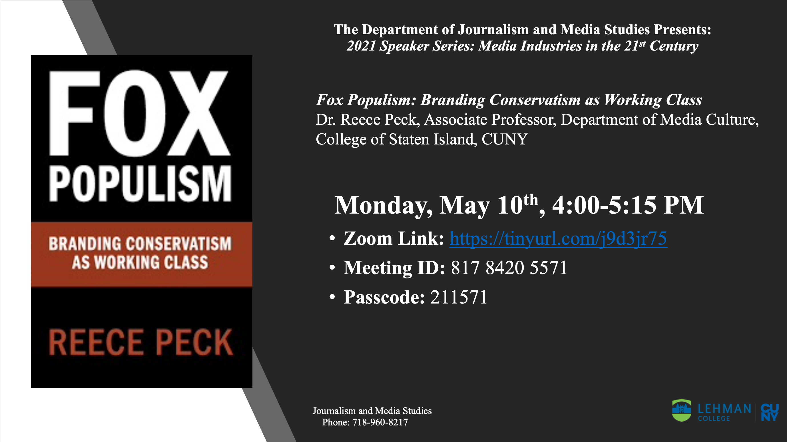 Fox Populism traces the historical development of Fox’s counter-elite news brand and reveals how its iconoclastic news style was crafted by fusing two class-based traditions of American public culture: one native to the politics in populism and one native to the news field in tabloid journalism. This book examines Fox News’s coverage of the Great Recession to illustrate how Fox deploys populism as a rhetorical tool for framing news events. Through close analyses of Fox News’ top-rated programs, I elucidate how star hosts like Bill O’Reilly and Sean Hannity skillfully align the enduring moral rationales of American populism with the political right. This, I assert, is how Fox News interpellates its audience as “the real Americans” and effectively re-presents narrow, conservative political demands as popular and universal. Fox News’ repeated claim to represent “the little guy” and cover news from, using O’Reilly’s words, “a working-class point of view” has often been dismissed as a simpleminded gimmick. Fox Populism seeks to show how the contrary is true. Not only does Fox’s populist journalistic style make for clever marketing and dramatic entertainment; it also stands as one of the most sophisticated and culturally astute forms of political communication in recent American history.
