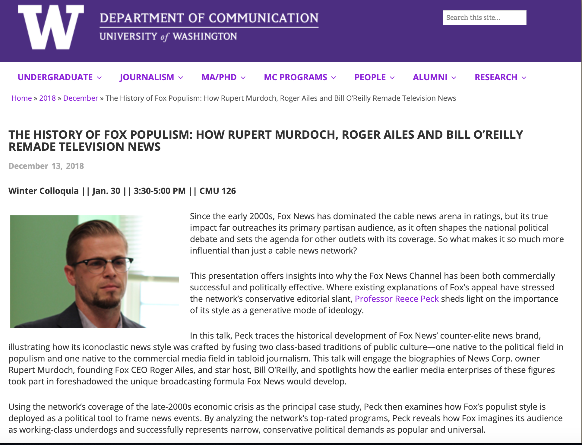 Over the course of its 29 year history, Fox News has become the most profitable asset of Rupert Murdoch’s global media empire and has attained iconic status in American popular culture. A quarter of Americans report watching the channel regularly and even non-viewers and critics reference Fox’s name when defining their own politics. What is it that makes the Fox News brand so distinct, compelling and polarizing? The conventional explanation for Fox’s appeal lies in the network’s conservative editorial slant, a slant that, by design, serves to confirm and validate the political predisposition of its audience. Undeniably, the network’s conservative political agenda is a major aspect of its corporate strategy, yet the prevailing focus on Fox’s ideological bias has lead analysts to overlook other ingredients essential to Fox’s broadcasting formula, namely, how its programming seeks to draw associations between right-wing politics and working-class tastes.